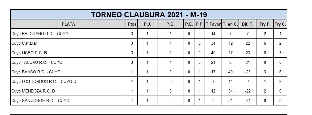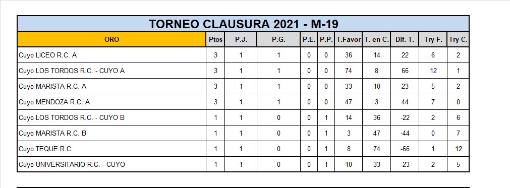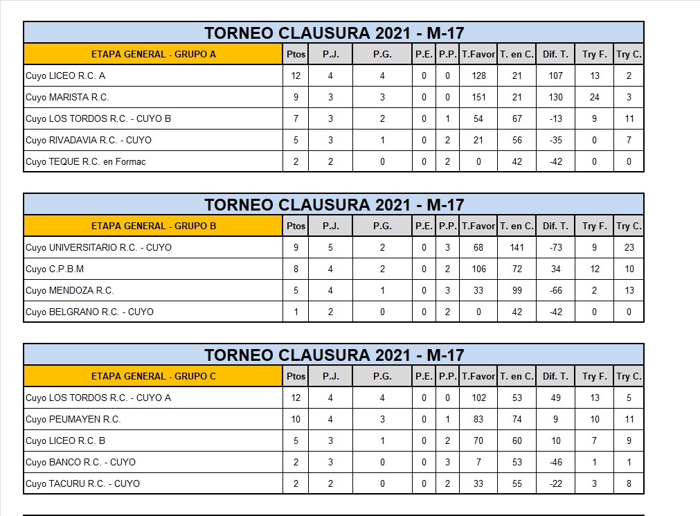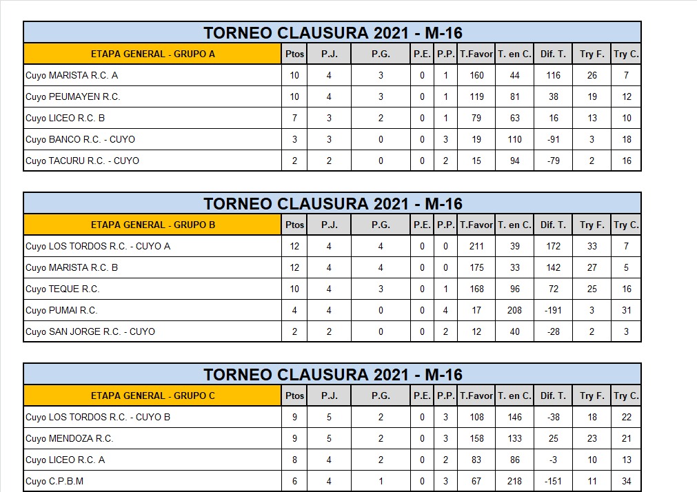 TORNEO JUVENIL M19 ORO TORNEO JUVENIL M19 TORNEO JUVENIL M17 TORNEO JUVENIL M16 -COMUNICACIÓN UNIÓN DE RUGBY DE CUYO-