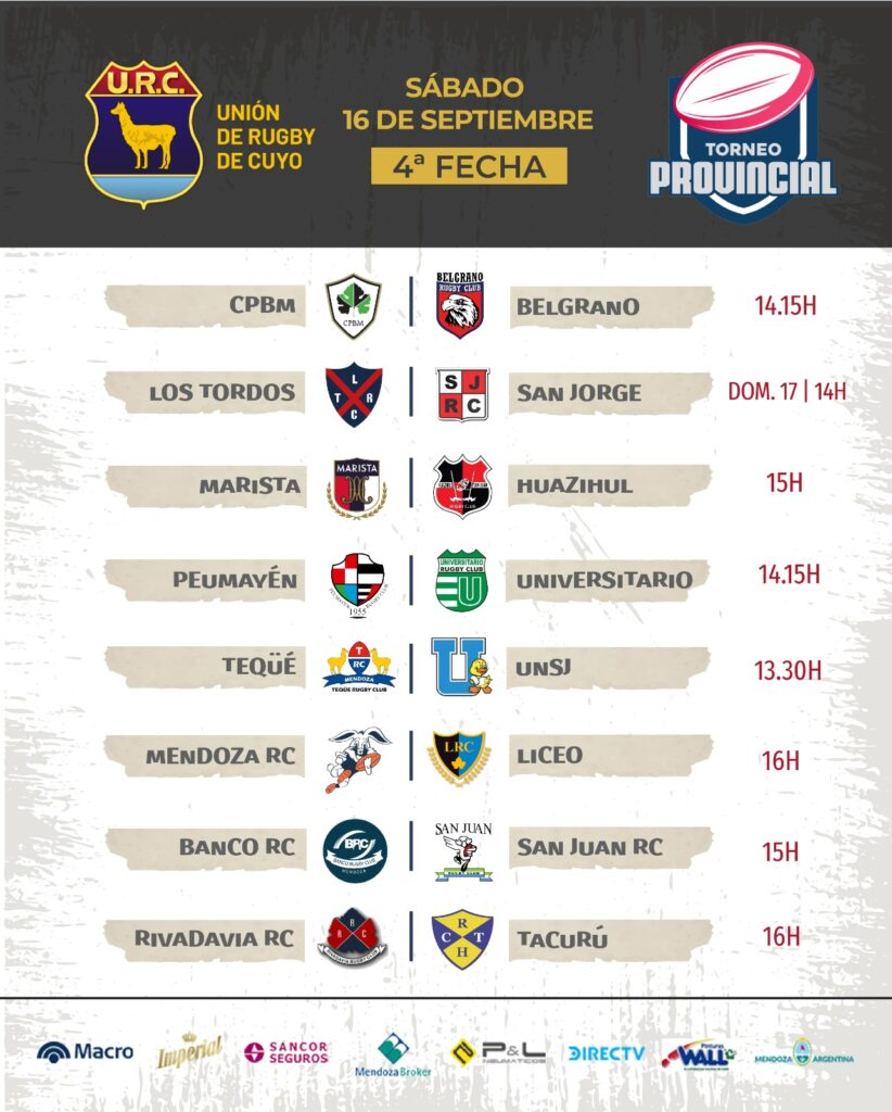 La cuarta fecha tendrá los siguientes cruces, que se disputarán el sábado 16 de septiembre:
