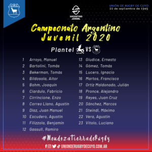 Para el primer desafío el staff convocó a la siguientes jugadores: Arroyo Manuel, Bartolini Tomás, Bekerman Tomás, Bildosola Aitor, Bohm Joaquín, Ciardulo Fabricio, Cirrincione Enzo, Correa Llano Agustín, Díaz Juan Manuel, Escudero Agustín, Filizzola Benjamín, Gassull Ramiro, Giudice Ernesto, Gómez Tomás, Lucero Ignacio, Martos Francisco, Ortíz Maldonado Julián, Pronce Alejandro, Reyes Juan Cruz, Sánchez Marcos, Steindl Máximo, Vera Agustín y Vitolo Luciano.