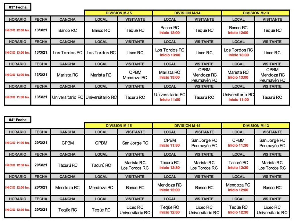 | Marista RC | Mendoza RC | Sabado | 14:45 | VENIER Silvio | Marista RC |