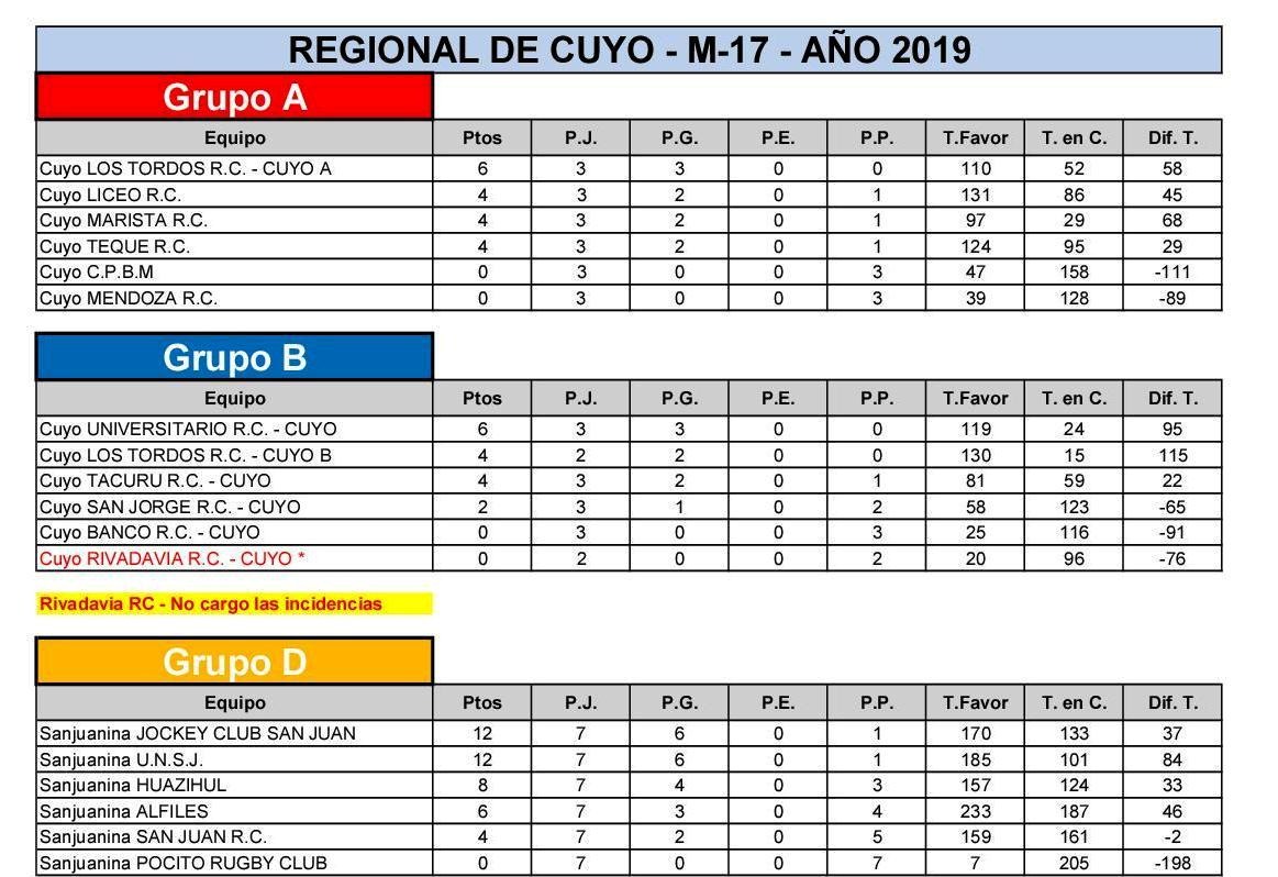 POSICIONES - TORNEOS REGIONALES TOP 8 / PLATA / BRONCE
