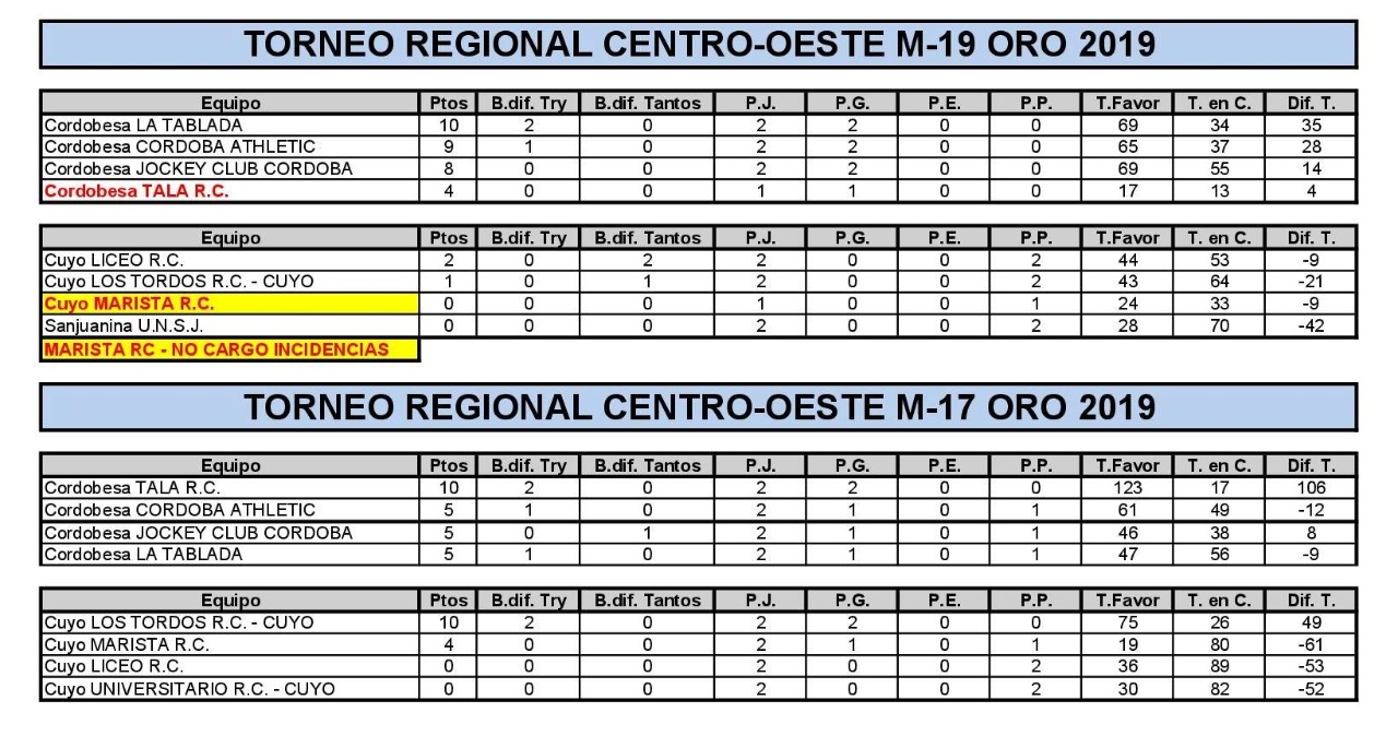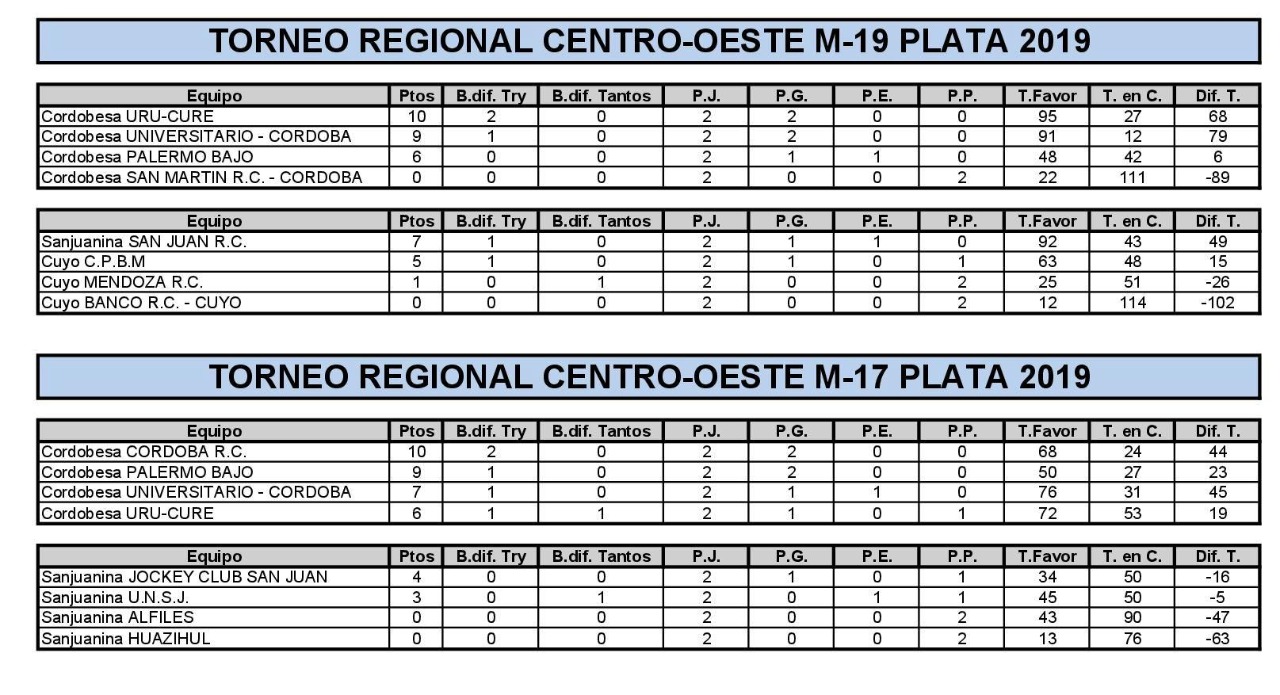 POSICIONES REGIONAL JUVENIL OESTE-CENTRO