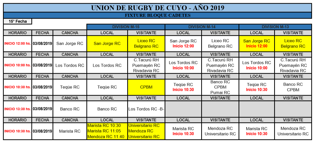 POSICIONES JUVENILES M19 / M17 / M16