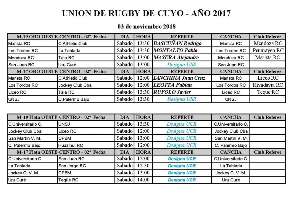 PROGRAMACIÓN TORNEO REGIONAL CENTRO-OESTE – 2° FECHA