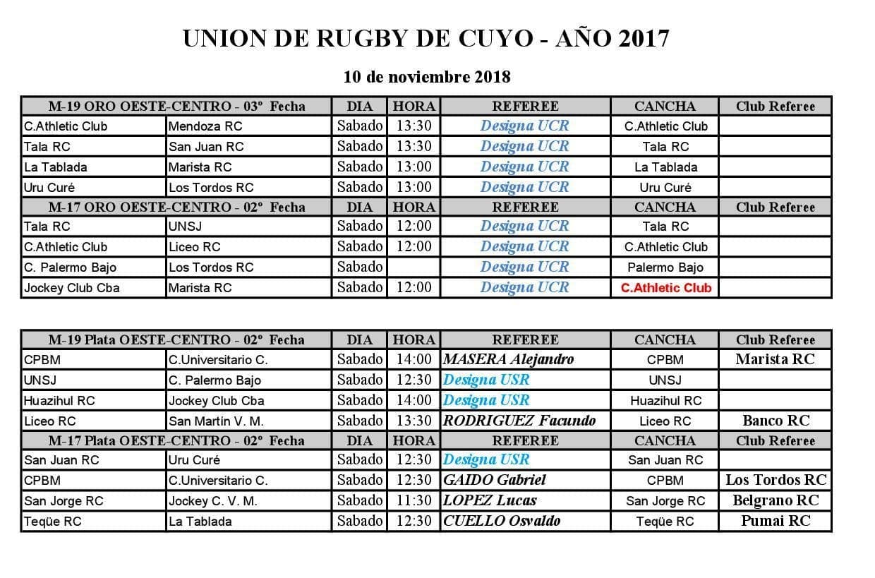 PROGRAMACIÓN TORNEO REGIONAL CENTRO-OESTE – 3° FECHA