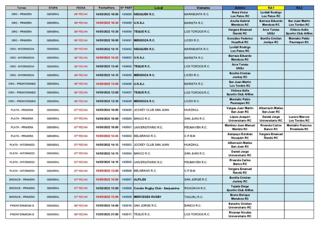 PROGRAMACIÓN Y DESIGNACIONES – 7 Y 8 DE MAYO