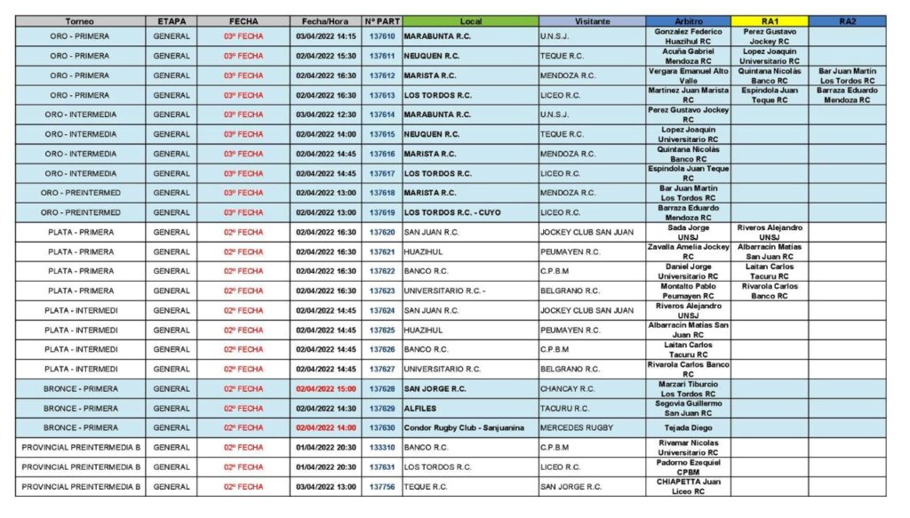PROGRAMACIÓN Y DESIGNACIONES – 2 Y 3 ABRIL