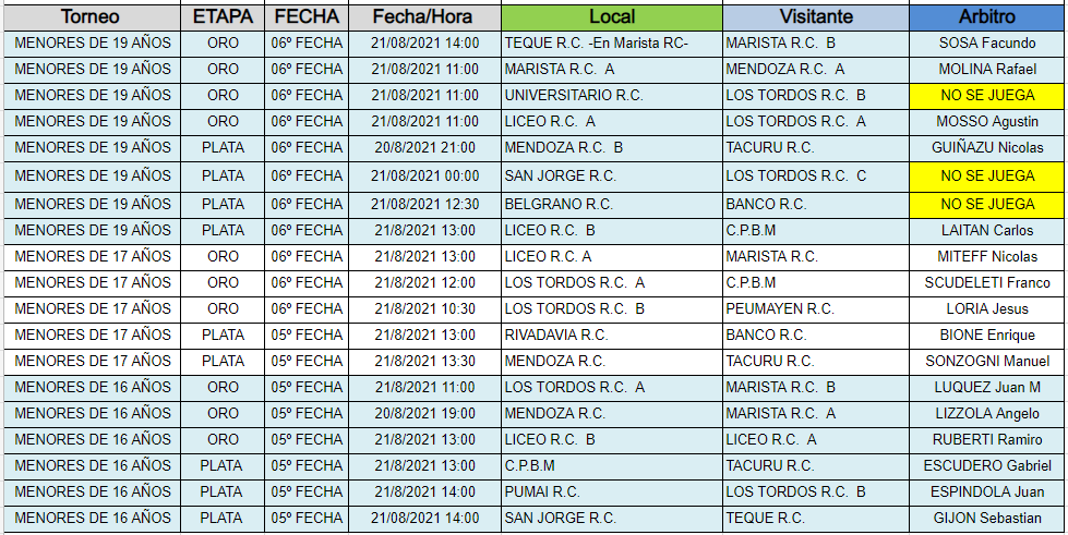 POSICIONES - TORNEOS PROVINCIALES URC