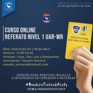 La Unión Argentina de Rugby presentó un calendario de capacitaciones virtuales dirigido a árbitros iniciales o interesados en comenzar a referear. Comienzan el próximo martes 21 de abril y serán compartidas entre las uniones que componen las ocho regiones: Centro, Litoral, NEA, NOA, Oeste, Pampeana, Patagonia y Buenos Aires.