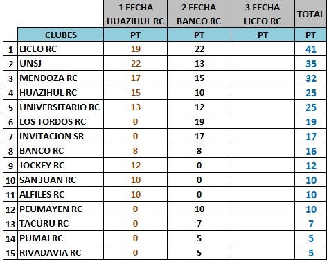 Transcurridas dos etapas del certamen, las posiciones del circuito son las siguientes:
